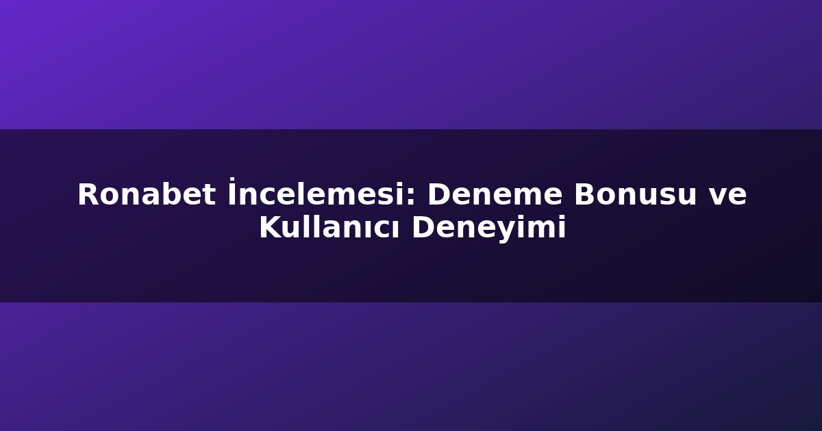 Ronabet Deneme Bonusu ve Kullanıcı Deneyimi